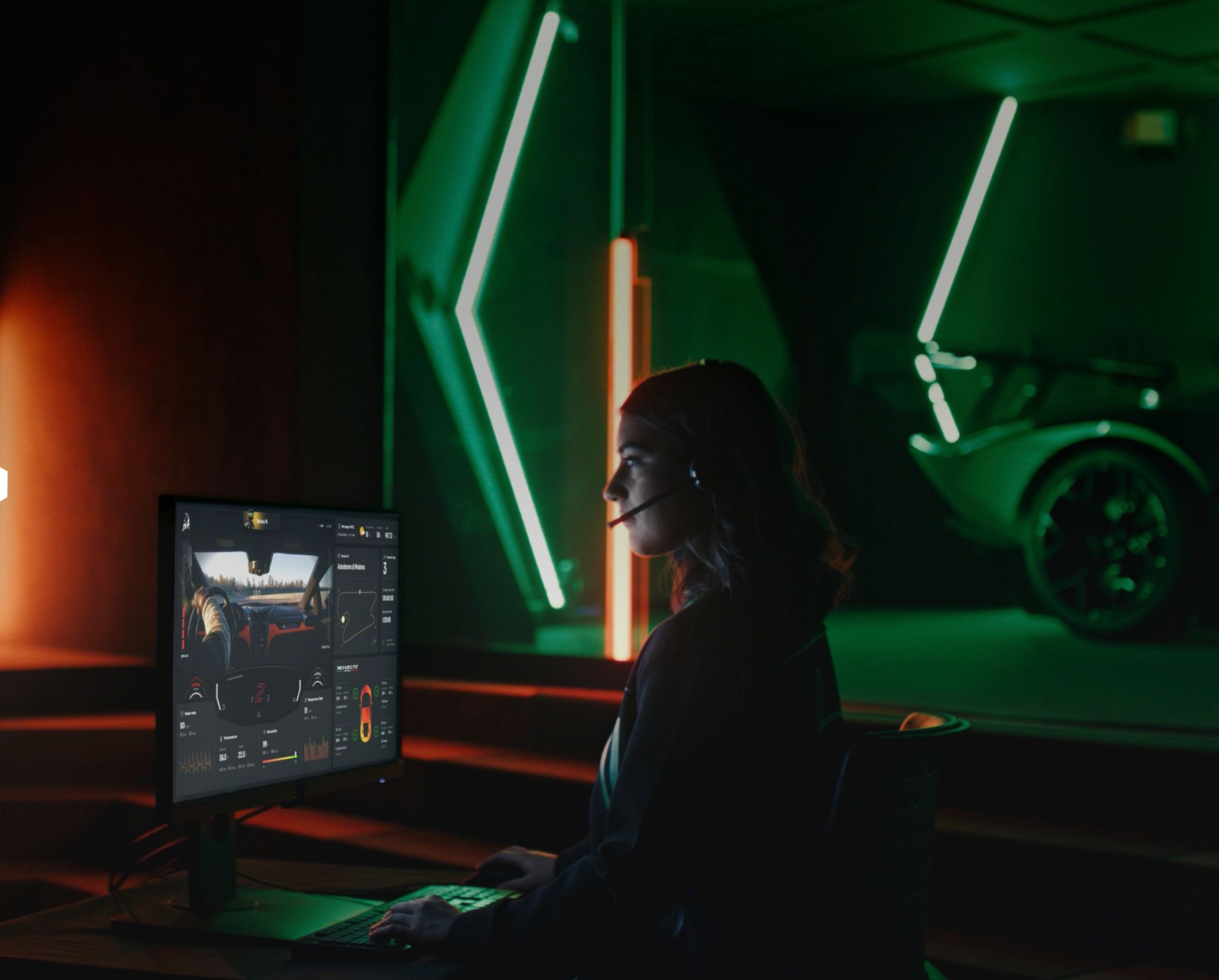 BEIDE SYSTEME ARBEITEN IN SYNERGIE MIT DEM DIGITAL CO-PILOT, EINEM PROAKTIVEN SPRACHASSISTENTEN, DER DEM FAHRER WÄHREND DER RENNSTRECKEN-SESSION DURCH EINEN ABGLEICH DER BIOMETRISCHEN DATEN UND DER FAHRZEUGDATEN RÜCKMELDUNG GIBT. DER DIGITALE COPILOT ANALYSIERT BEISPIELSWEISE DIE RUNDENZEITEN UND LIEFERT NÜTZLICHE HINWEISE ZUR VERBESSERUNG DER FAHRLINIEN UND BREMSPUNKTE SOWIE INFORMATIONEN ZUR PERFORMANCE DER ANDEREN FAHRZEUGE AUF DER STRECKE.